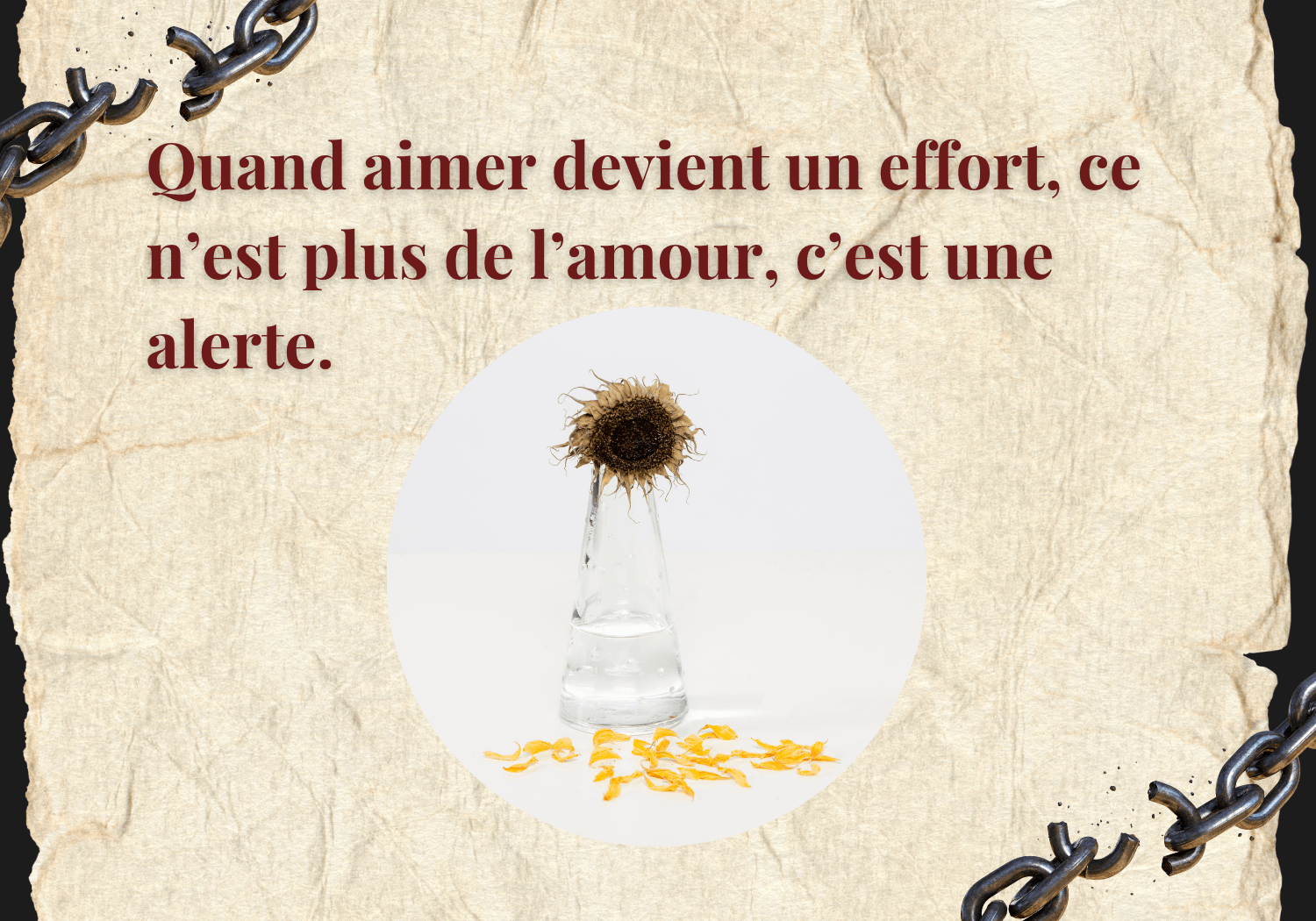 Elle a été en orphelinat pendant sept longues années. Elle portait en elle une blessure d’abandon ancienne, structurante, transmise bien avant moi. Cette blessure n’a pas disparu avec l’amour qu’elle nous portait. Elle s’est exprimée autrement, de façon inconsciente, dans la relation.